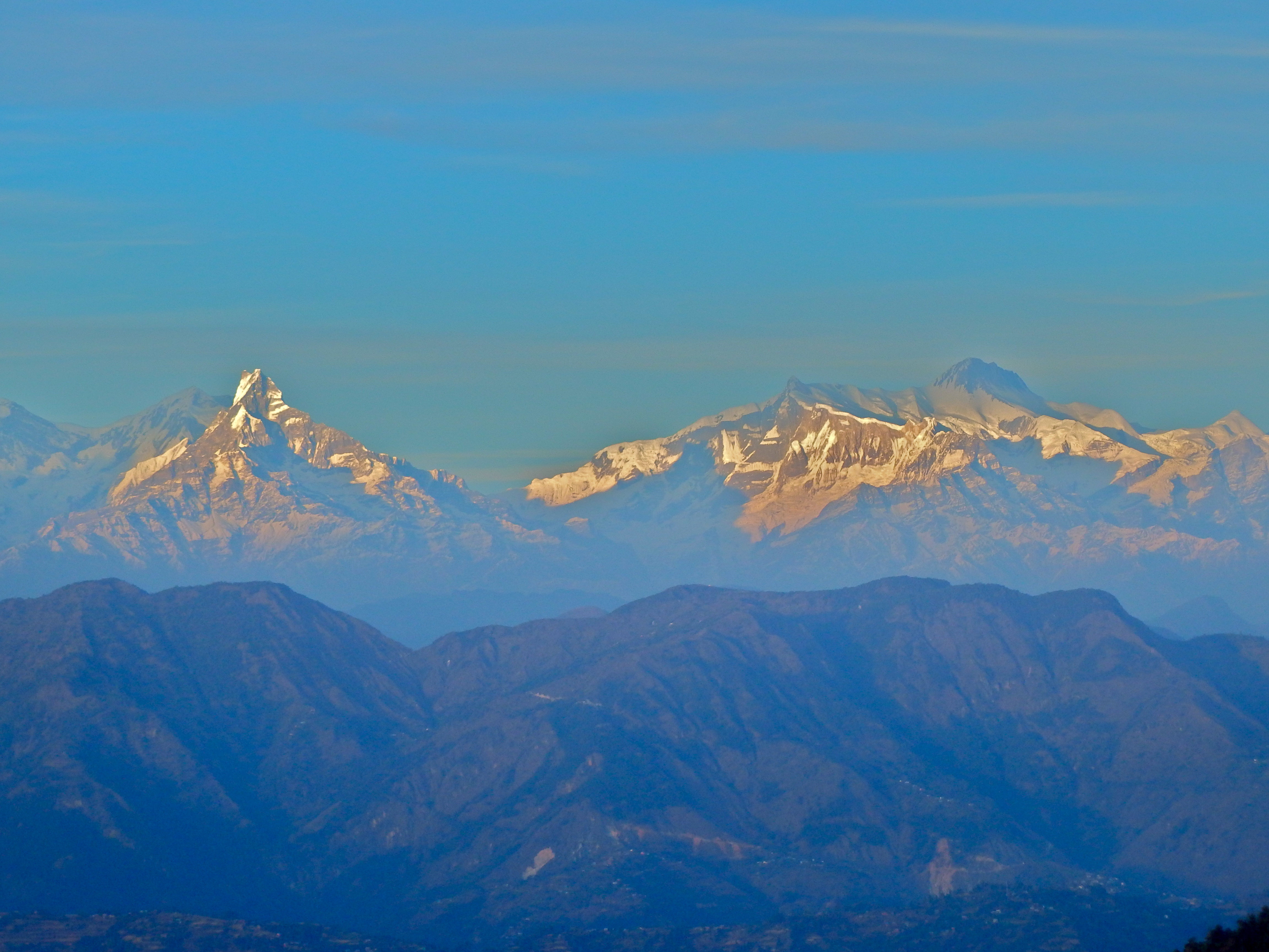 With my very accurate map, I follow the path to a statue of Hanuman, and then onwards to the always present Buddha statue. Once I got to the Buddha I knew it was about to get good, because as I walked past Buddha, said hey, and there was a gazebo viewpoint where the Himalaya-Annapurna vista was laid out in front of you. And the day was devastatingly clear. Just impeccable and stunning and mammoth and all adjectives that could only be shown in pictures really! I stayed up for almost two hours, taking pictures and gazing, and then I had spent enough time doing that, that I figured I might as well wait for sunset and see what happened! Amazing. No words can really even describe, they are beyond any expectation you could have.